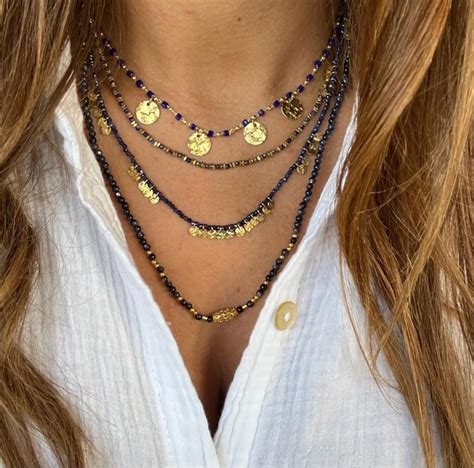 One of the most appealing aspects of a beaded layered necklace lies in the mesmerizing beauty of the beads themselves. Crafted from a variety of materials such as glass, crystal, wood, or semi-precious stones, each bead exudes its own unique charm and character. The choice of beads determines the overall aesthetic of the necklace, allowing you to express your personal style and taste.