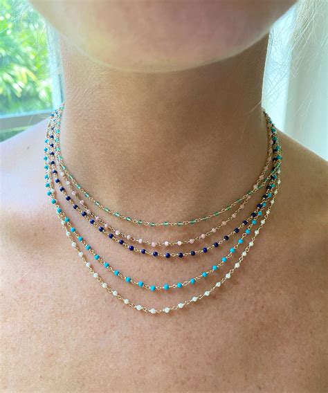 - Layering Potential: Delicate beaded necklaces are perfect for layering with other necklaces. Mix and match different lengths, styles, and materials to create a personalized and unique look.